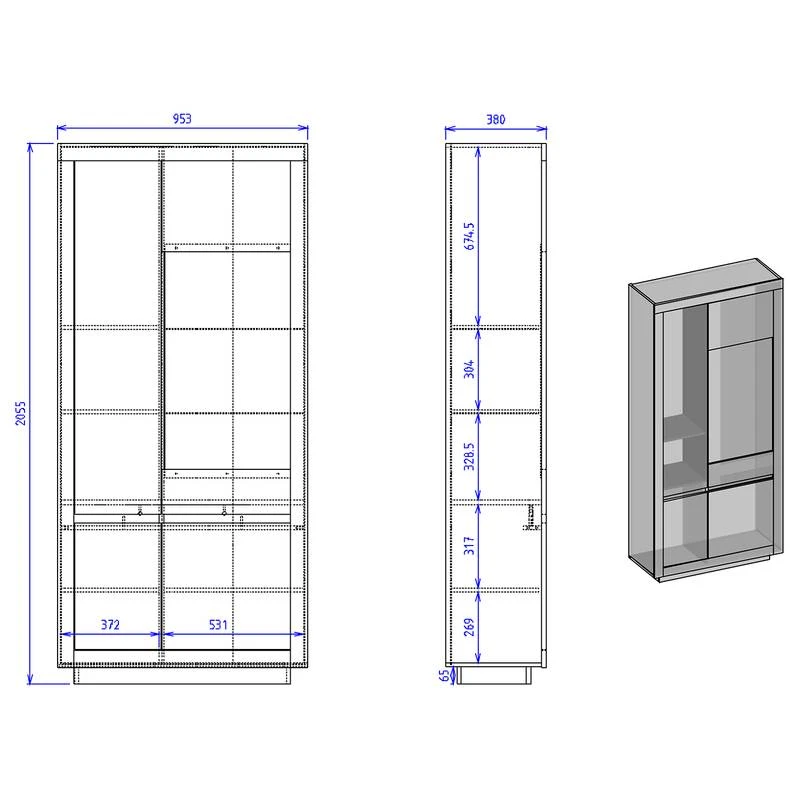 - Nombre de portes en verre : 1 porte en verre